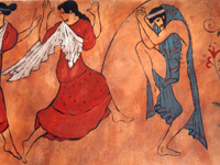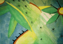 - Väggmålning på vänster sida om entrén i trappuppgång. Kaseintempera på puts 4x3 m. BRF Norrtullsgatan 22. År 2000.