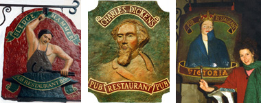- Skulpterade tvärskyltar till ett antal restauranger såsom Charles Dickens, Sledgehammer, Queen Victoria, Brother Tuck, Movitz källare 1991-92.